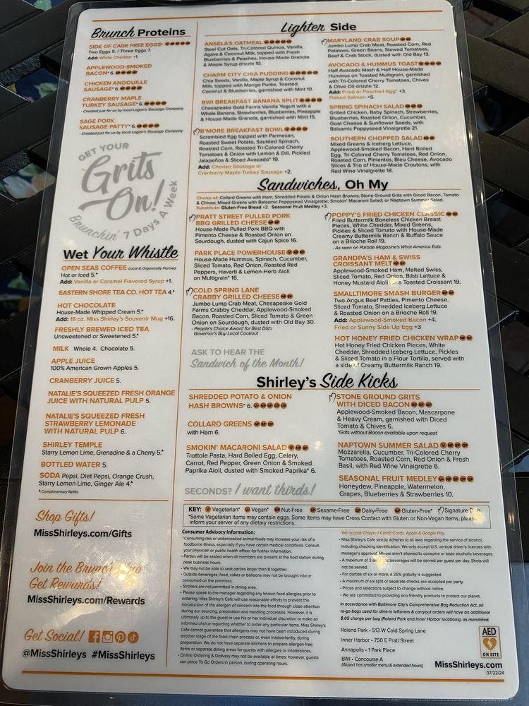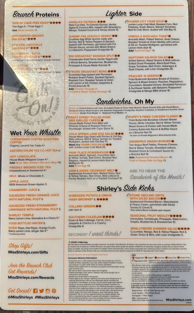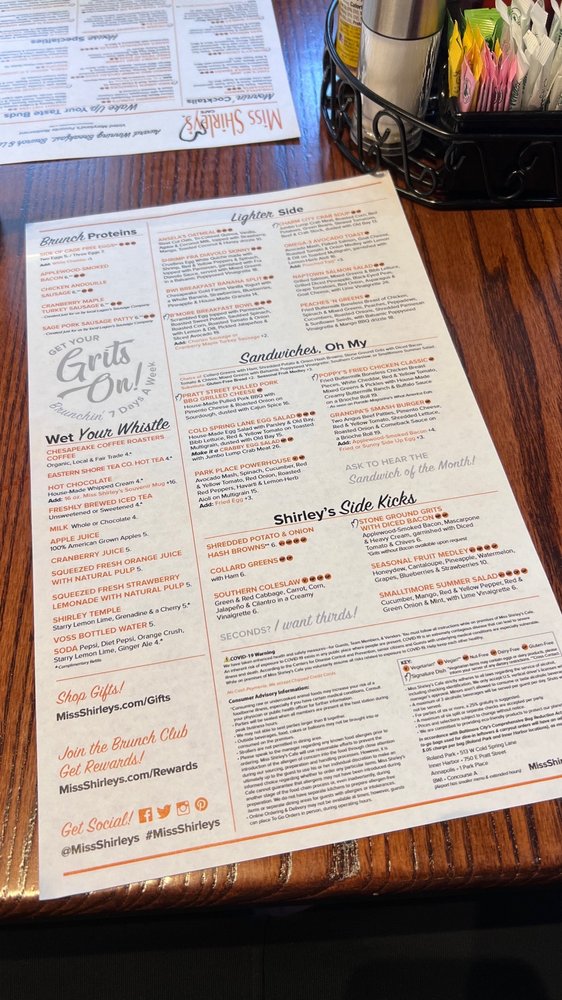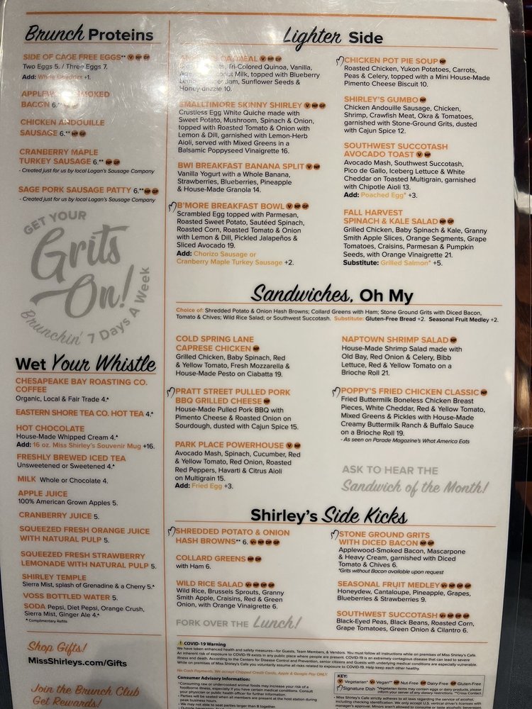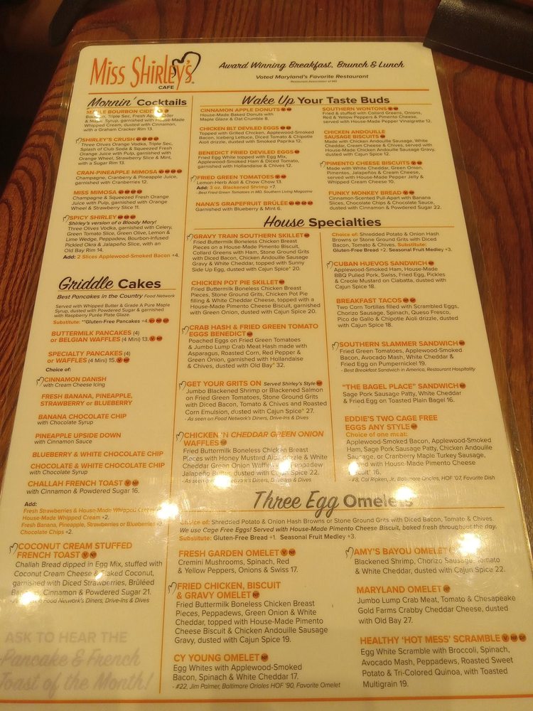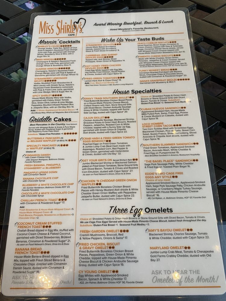 Miss Shirley's Cafe Menu (2025 Update)